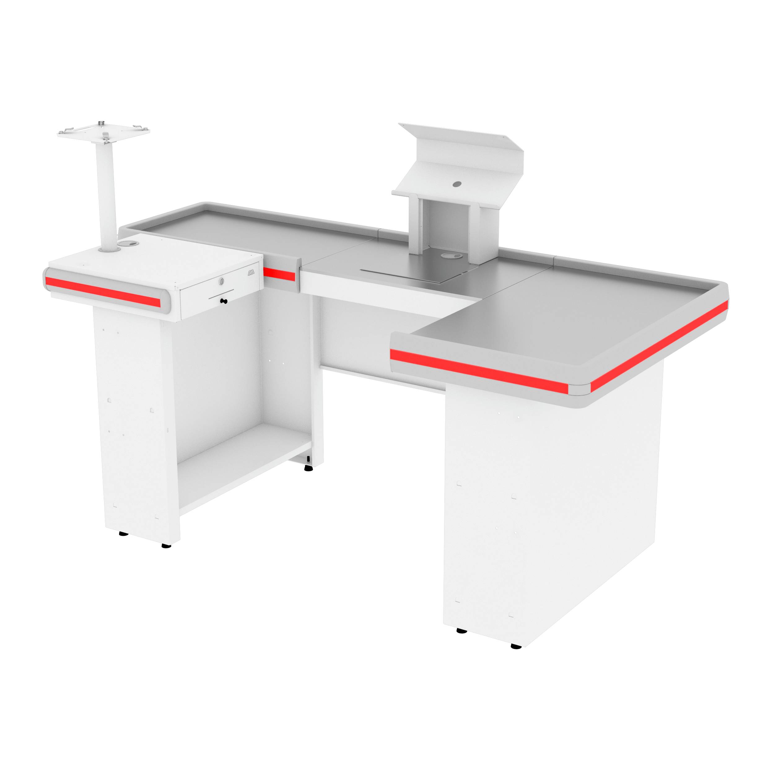Equipamento destinado a registrar as compras de mercadorias, garantindo o controle de fluxo das operações. A linha Flex é ideal para pequenos espaços e filas rápidas, um produto resistente, que permite maior agilidade. Possui design moderno em formato U, alinhado ao sistema de automação e atende à norma ergonômica NR17.